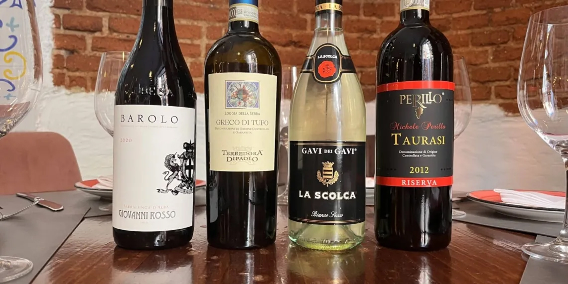 La velada comenzó con la exploración de dos regiones clave del mapa vinícola italiano: Campania y Piamonte. Cada una aportó vinos de gran carácter, que fueron degustados en paralelo para resaltar sus diferencias de origen, clima y filosofía enológica.