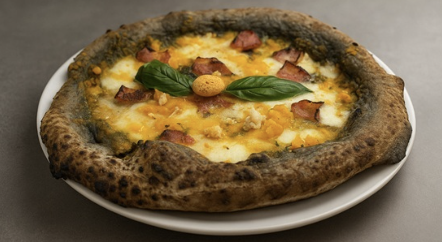 Precisamente una de las novedades es la pizza de calabaza, una creación que une tradición e ingenio y que llega justo a tiempo para celebrar Halloween, esa tradición foránea adoptada ya en Italia y España. Suave, cremosa y con un punto dulce inesperado, combina la calabaza mantuana asada con guanciale crujiente, gorgonzola, pecorino y crumble de galleta amaretto, todo sobre una masa negra —elaborada con varias harinas y carbón vegetal activo— que se leuda durante horas para que sea ligera y digestiva. Un guiño divertido y otoñal que demuestra que la pizza también puede reinventarse sin perder su alma napolitana. Estará disponible los últimos días de octubre hasta el 2 de noviembre, Día de los Difuntos, una fecha mucho más señalada en el calendario italiano que el popular Halloween.