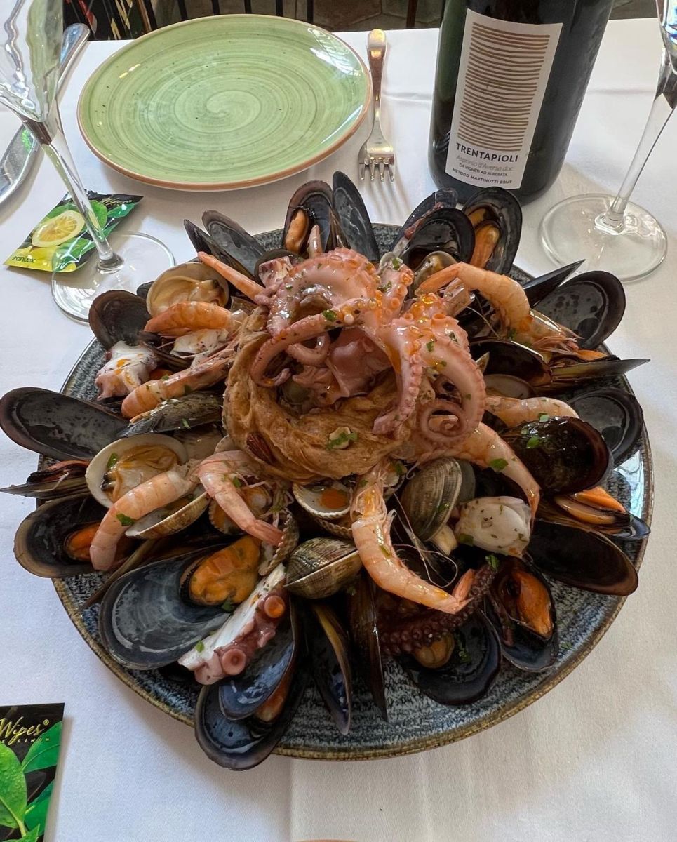 La propuesta pascual del establecimiento comienza con la Zuppa di Cozze, un entrante marinero que aúna los mejores frutos del mar en un plato que no deja indiferente a nadie. No se trata de una sopa aluso, sino de una combinación de mejillones frescos que se deshacen en la boca, preparados en una salsa de tomate picante y aderezada con un pulpo de una ternura exquisita, bígaros, calamares y gambas. El plato perfecto para respetar la vigilia y la abstinencia de comer carne.
